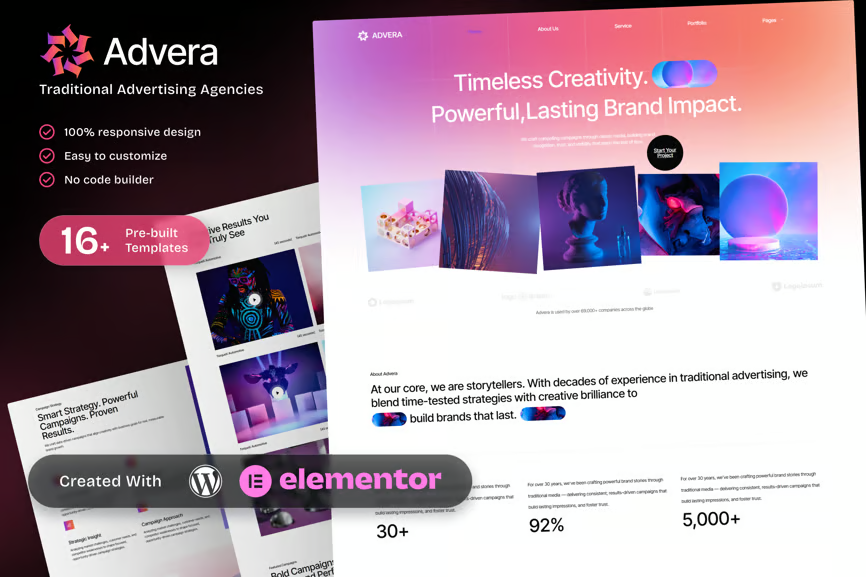 Advera Advertising Agency Elementor Template Kit for Business Promotion and Branding