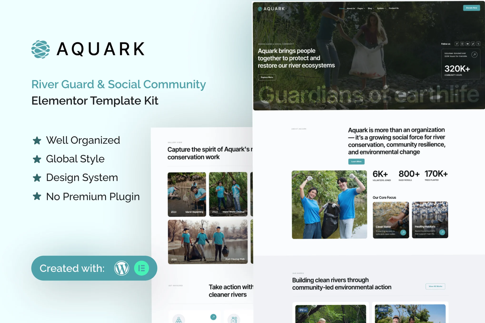 Introducing “Aquark” – an Elementor Template Kit for River Guards & Social Communities in the WordPress Universe!