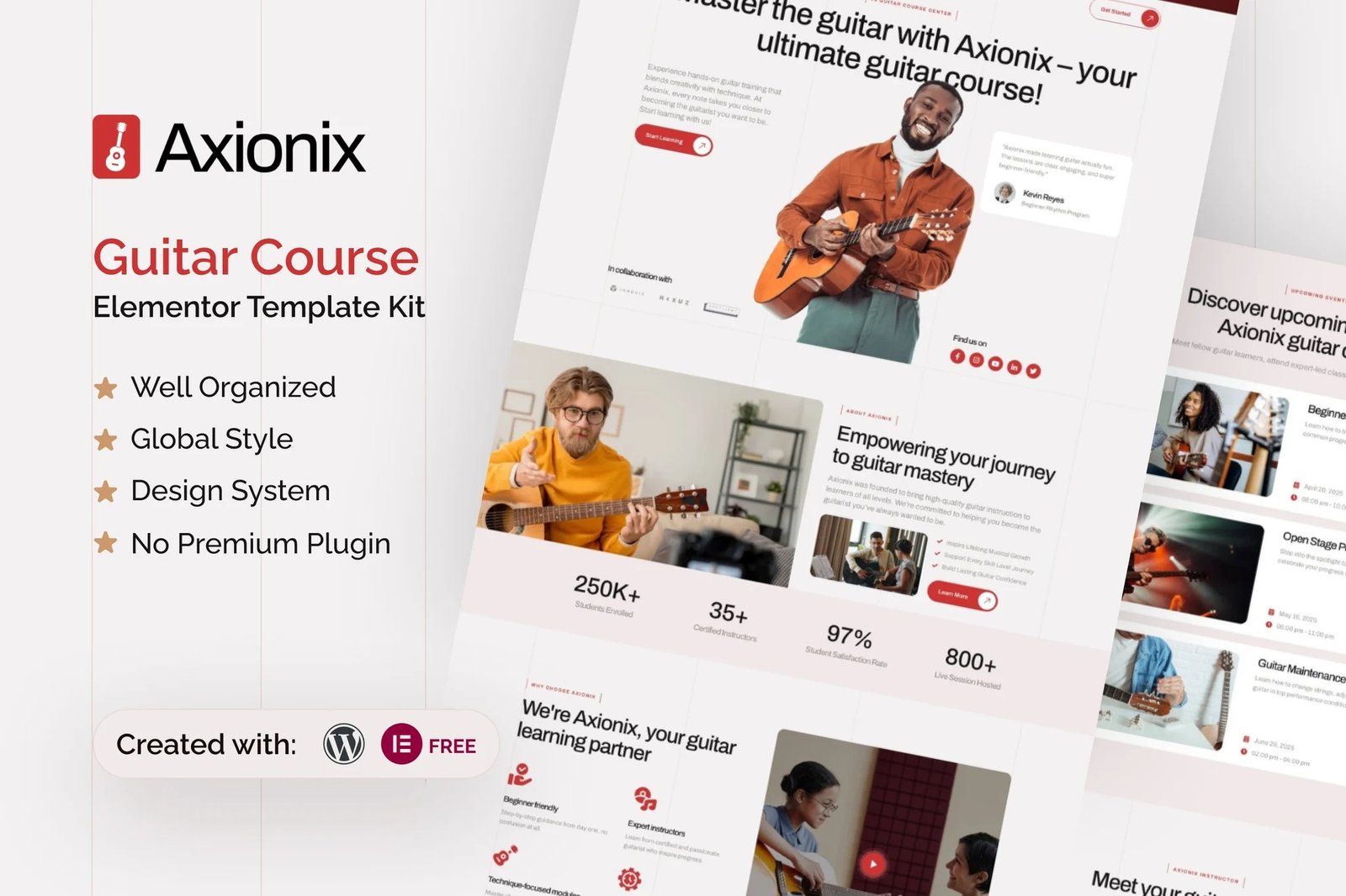 Introducing ?Axionix? ? the ultimate Elementor-powered WordPress template kit designed specifically for Guitar Course websites. Whether you?re a solo guitar instructor, an online music school, or a platform offering beginner to advanced guitar lessons, Axionix gives you the perfect blend of style and performance to grow your music teaching brand online.