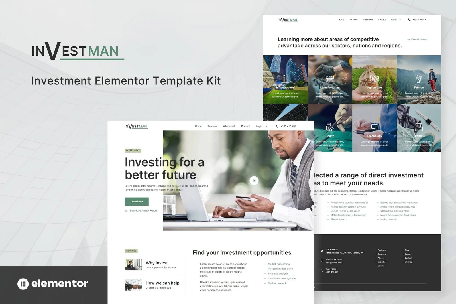 Investman ? Invesment Consultant Elementor Template Kit is a collection of layouts for the Elementor page builder WordPress plugin, designed for use with Elementor Free Version for a clean Design. It works with most themes and is optimized for use with the free Hello Elementor theme.