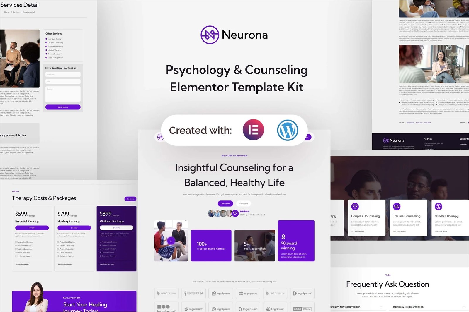 Neurona is an Elementor template kit specifically designed for psychology, counseling, psychiatry, psychological therapy, and related businesses. It features a clean and minimalist design with a modern layout style, suitable for the Elementor Free version. This kit is easy to customize and can be used by anyone without coding knowledge.