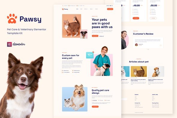 Pawsy – Pet Care & Veterinary Elementor Template Kit