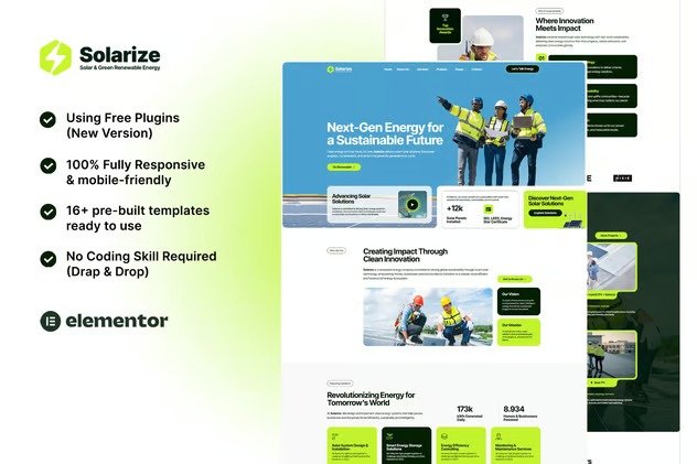Solarize – Solar & Green Renewable Energy Elementor Template Kit